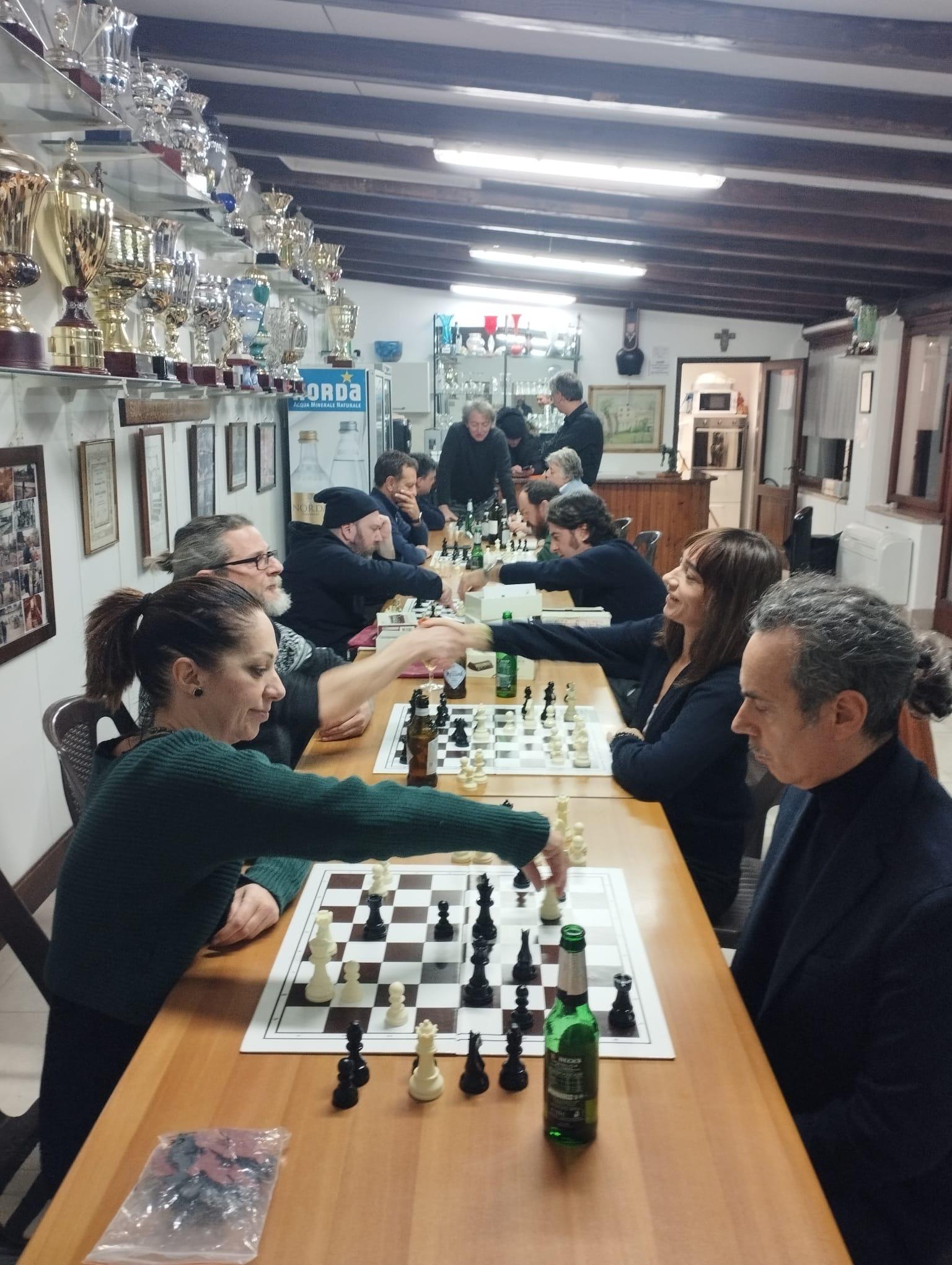 Programma: Ore 19.30 appello dei presenti. Primo e unico turno della giornata dopo cena o, per chi lo desidera, previo accordo con l’avversario, prima. Tempo di riflessione: per tutti tranne gli esordienti 6’+5”; per gli esordienti 9’+40”. Obbligo di trascrizione delle mosse per gli esordienti.